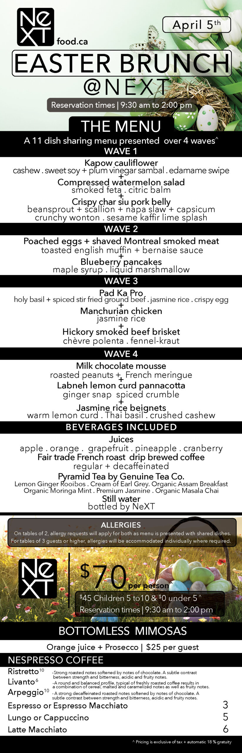 – Menu presented as is, as such allergies will not be accommodated.