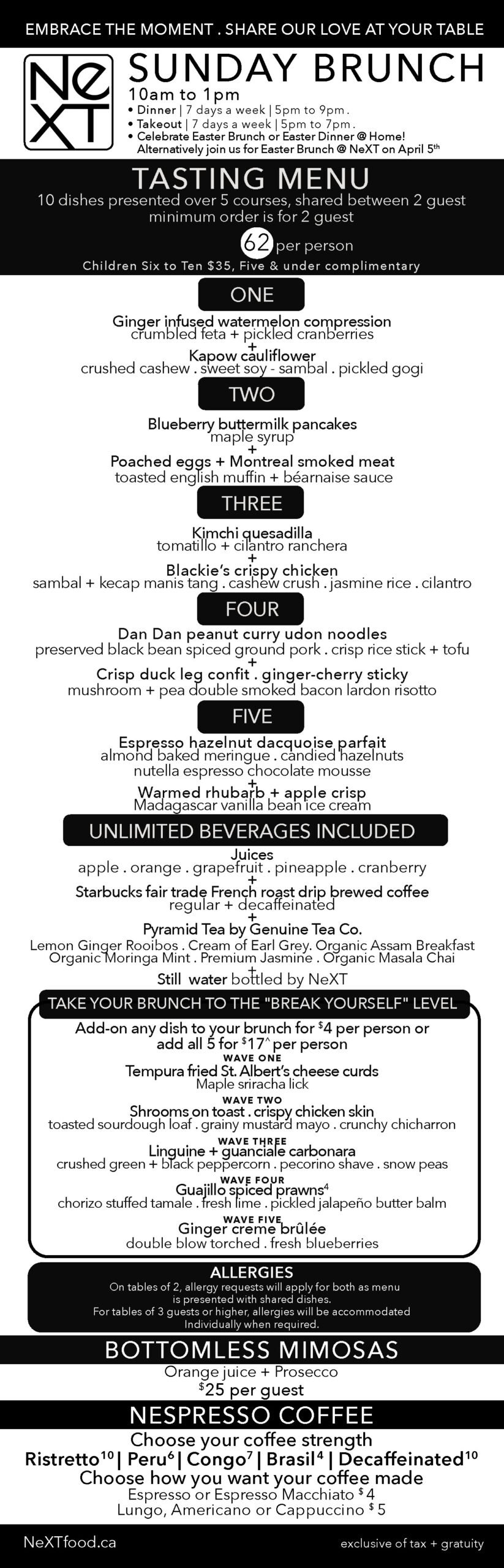 For tables of 3 guests or higher, allergies will be accommodated individually when required.